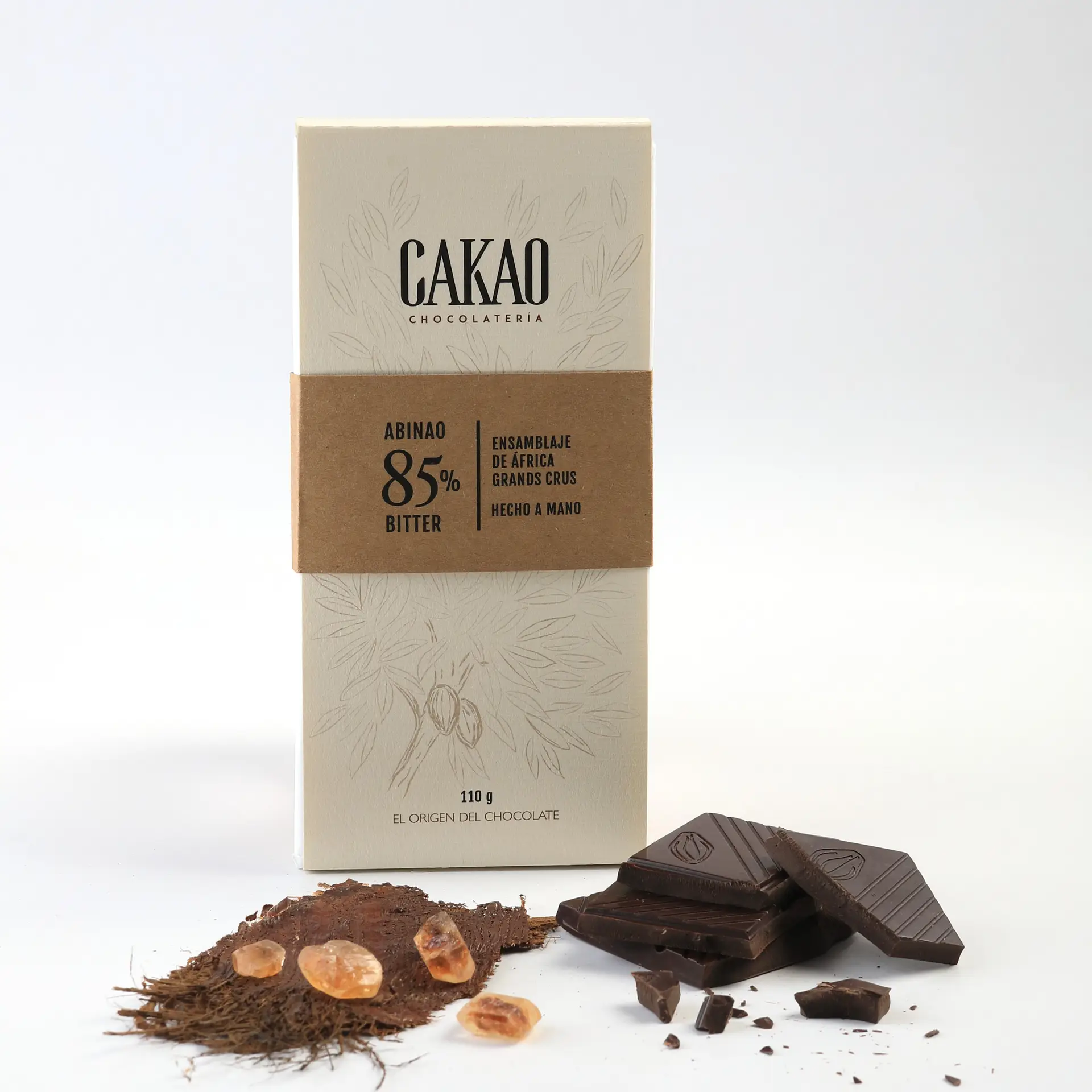 Fuerte en los taninos: Chocolate negro con un alto contenido de cacao, logrado por una hábil mezcla de los mejores granos de Forastero de África, lo que hacen del Abinao un «Mariage de Grands Crus“. Es un chocolate altamente sofisticado con poder y aroma intenso, en donde destaca un amargor y sabores específicos de larga duración excepcionales.