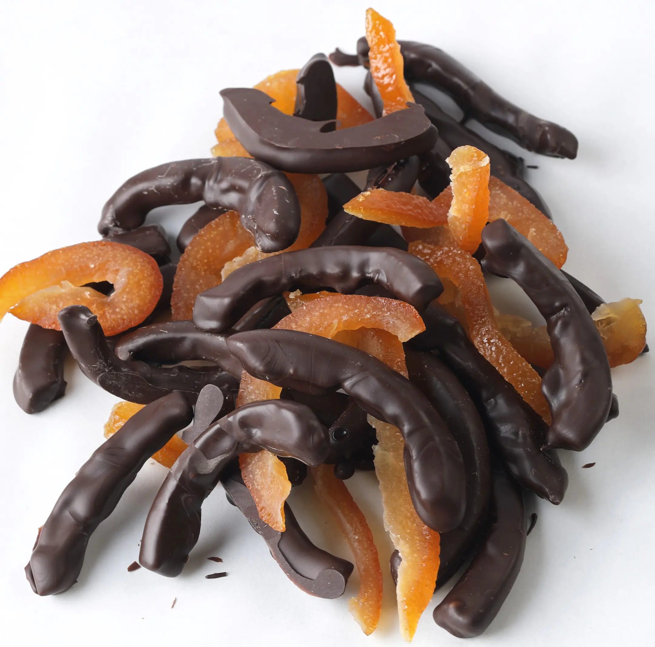 Elaboradas con ingredientes de la más alta calidad, nuestras naranjitas confitadas ofrecen una experiencia premium. Utilizamos las mejores pieles de naranja confitadas y las bañamos en un exquisito chocolate semiamargo, garantizando un sabor auténtico que deleitará tu paladar. La combinación de la piel de naranja confitada con chocolate semiamargo crea un equilibrio perfecto entre lo dulce y lo amargo.